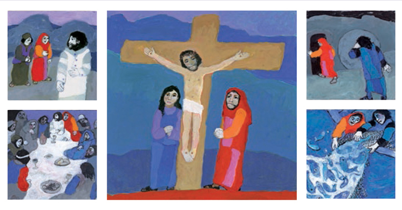 Le cinque tavolo presenti sul polittico, scandiscono i cinque episodi in cui il discepolo 'fa casa' col Maestro. Il 'fare casa' diventa così la complessiva esperienza che genera il discepolo alla fede nel Risorto. La sua veste dai colori caldi della terra, del fuoco e dell'amore, aggancia il nostro sguardoe ci permette, a nostra volta, di seguirlo, di non perderlo di vista. Il pieghevole cartonato è stato pensato da consegnare a ogni giovane della propria diocesi. Il pieghevole ha uno spazio sul retro predisposto affinché ogni diocesi possa personalizzarlo con una lettera del Vescovo rivolta ai propri giovani. Tuttavia questa ulteriore lavorazione necessita di più tempo.