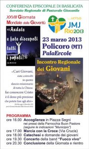 I giovani lucani si incontrano a Policoro per festeggiare la giornata dei giovani e la prossima Pasqua del Signore. Si attendono circa 1500 giovani, un numero molto elevato che attesta l'entusiasmo che si avverte nei giovani…