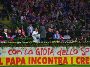 Allo stadio Meazza, davanti a 80mila cresimandi, il Papa cita la parrocchia e l'oratorio come i luoghi in cui imparare e accrescere la fede.Con l'aiuto dei nonni e degli amici.